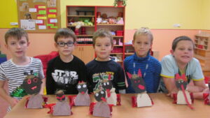 Krásné období roku, na něž se těší nejen děti… Nejprve očekáváme čerty, možná trochu s obavami čekáme na knihu hříchů, jestli nám ji náš Barnabáš z pekla včas pošle a co v ní bude zapsáno…Nakonec nás i docela pochválil a do našich vyrobených čertíků nám dal sladkou odměnu.
