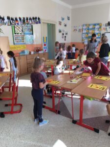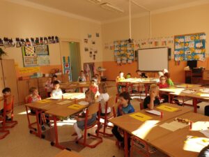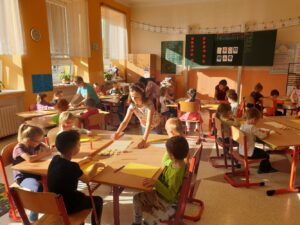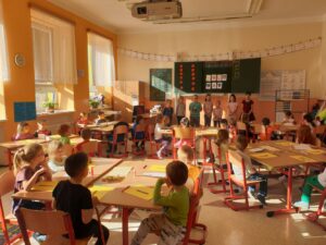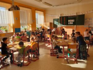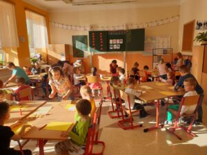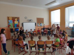 Stejně jako v posledních letech, se i tento školní rok věnujeme našim budoucím předškolákům. Dnes, 15. 10., proběhlo naše první setkání. A protože naším krédem pro tento školní rok je: „Kdo může, pomůže!“, pomohly tentokrát starší děti mladším a část programu si vzali na starost zdejší „čtenáři“, tedy návštěvníci čtenářského klubu, který se zde pravidelně schází. Naši budoucí školáci se tak seznámili s prostředím, zahráli si zábavné hry, vyrobili svoji první výtvarnou práci, zazpívali písničku a s úsměvem na rtech byli předáni nedočkavým rodičům. Moc děkujeme za spolupráci a budeme se těšit na příští setkání.