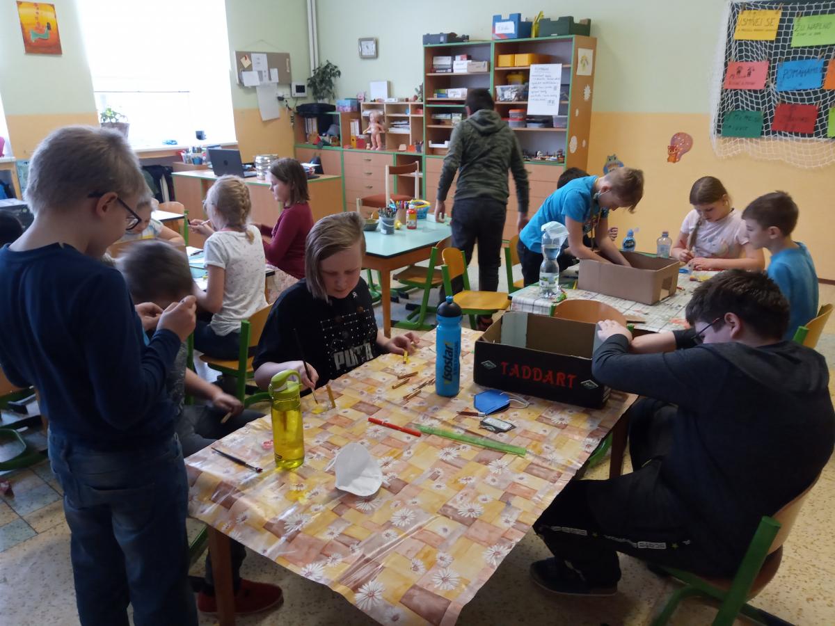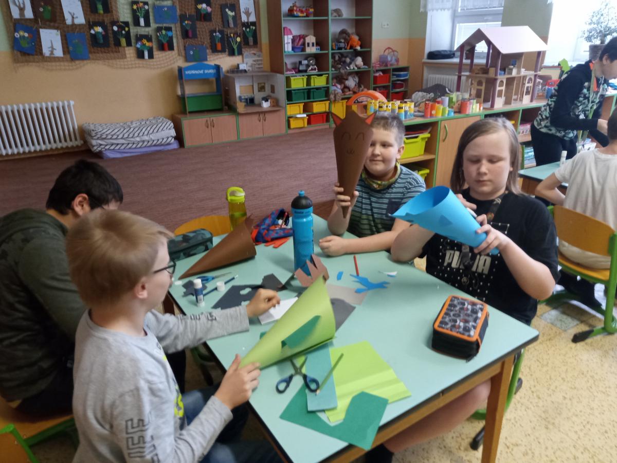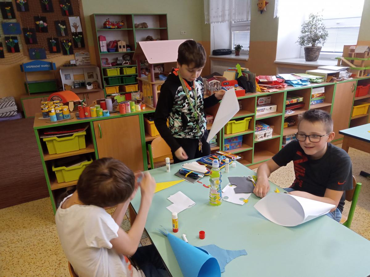 školní rok se nám blíží pomalu ale jistě do finále. Při „prackách“ vyrábíme společně vše možné i nemožné. Na podzim jsme ze spadaných listů vyrobili krásné podzimní dekorace, v čase vánočním jsme si „pekli“ nepečené cukroví, ozdobili perníčky a poseděli společně u hrnku čaje… Z krabic jsme vyrobili stolní fotbálky, malovali jsme vajíčka, maminkám vyráběli přáníčka, kytičky, pro budoucí prvňáčky dárkové kornouty…
