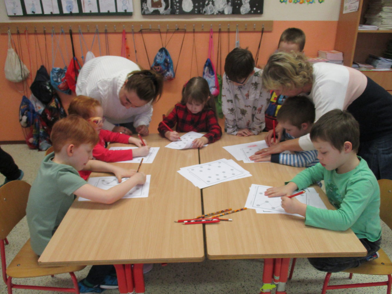 Zápisy do 1.ročníků ZŠ se blíží, proto se dne 21.1.2020 opět sešli předškoláci z obou hylvátských MŠ ve škole, aby společně prožili úterní odpoledne a připravili se na to, že se stanou brzy spolužáky. Na různorodých stanovištích si prohlubovali matematické představy, rozcvičovali ruku pro budoucí psaní a trénovali paměť nacvičením pohybové říkanky pro své rodiče. V práci jim byly nápomocné děti z čtenářského klubu a žáci 1.třídy si na úvod přichystali malé překvapení. No a teď už se těšíme na setkání při zápisu do prvního ročníku, který se bude konat v měsíci dubnu. učitelky 1.stupně