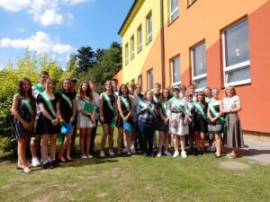 Letošní deváťáci ukončili své působení na základní škole netradičním způsobem. Jejich loučení probíhalo ve znamení stromů. Po vzpomínkovém videu a hudebním vystoupení učitele a rodiče čekala vernisáž výtvarných a literárních prací, při kterých se žáci nechali inspirovat stromy v našem městě. Tyto deváťáky bude připomínat okrasná jabloň, kterou pak zasadili před budovu školy. Zelené šerpy, které dokreslily celé odpoledne, na chvíli sundali, protože vyzvali učitele na turnaj v ringu – skončil s nerozhodným skóre.