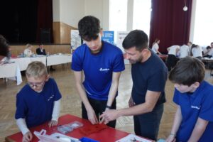 Tato soutěž pořádaná Krajskou hospodářskou komorou Pardubického kraje si klade za cíl hledání a rozvoj mladých talentů a nabízí účastníkům příležitost řešit reálný projekt ve spolupráci s vrstevníky i staršími členy týmu. Soutěžním úkolem bylo postavit funkční model dálkově ovládaného auta ze stavebnice Merkur a projet s ním určenou dráhu. Jak to jezdilo si můžete prohlédnout na FB firmy Declima, které tímto děkujeme za pozvání našich páťáku do svého týmu a za další zkušenosti a dovednosti, které účasti v této soutěži získali. Jejich pohled si můžete přečíst zde.